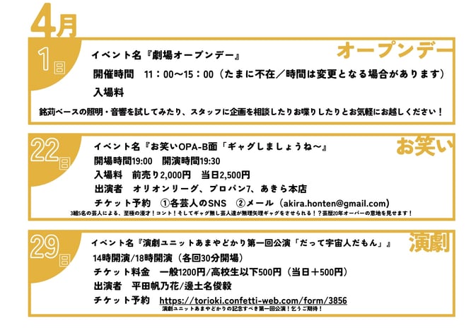演劇・ミュージカル・落語・ダンス・伝統芸能・講演・試写会・トークライブなどなど、火曜日は銘苅ベースで賑やかな1日を過ごしましょう!